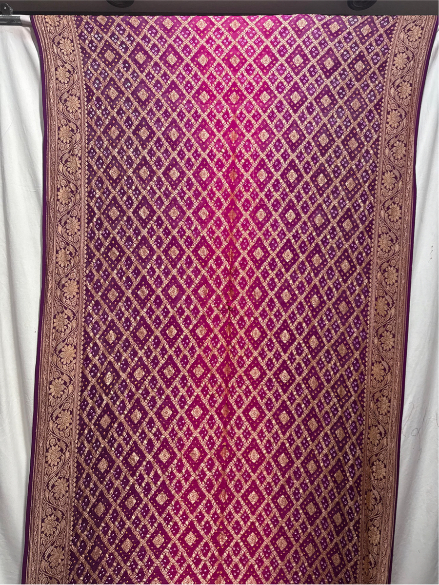 - Material: Made from premium Banarasi Georgette fabric with traditional Bandhani work, offering elegance, comfort, and durability.
