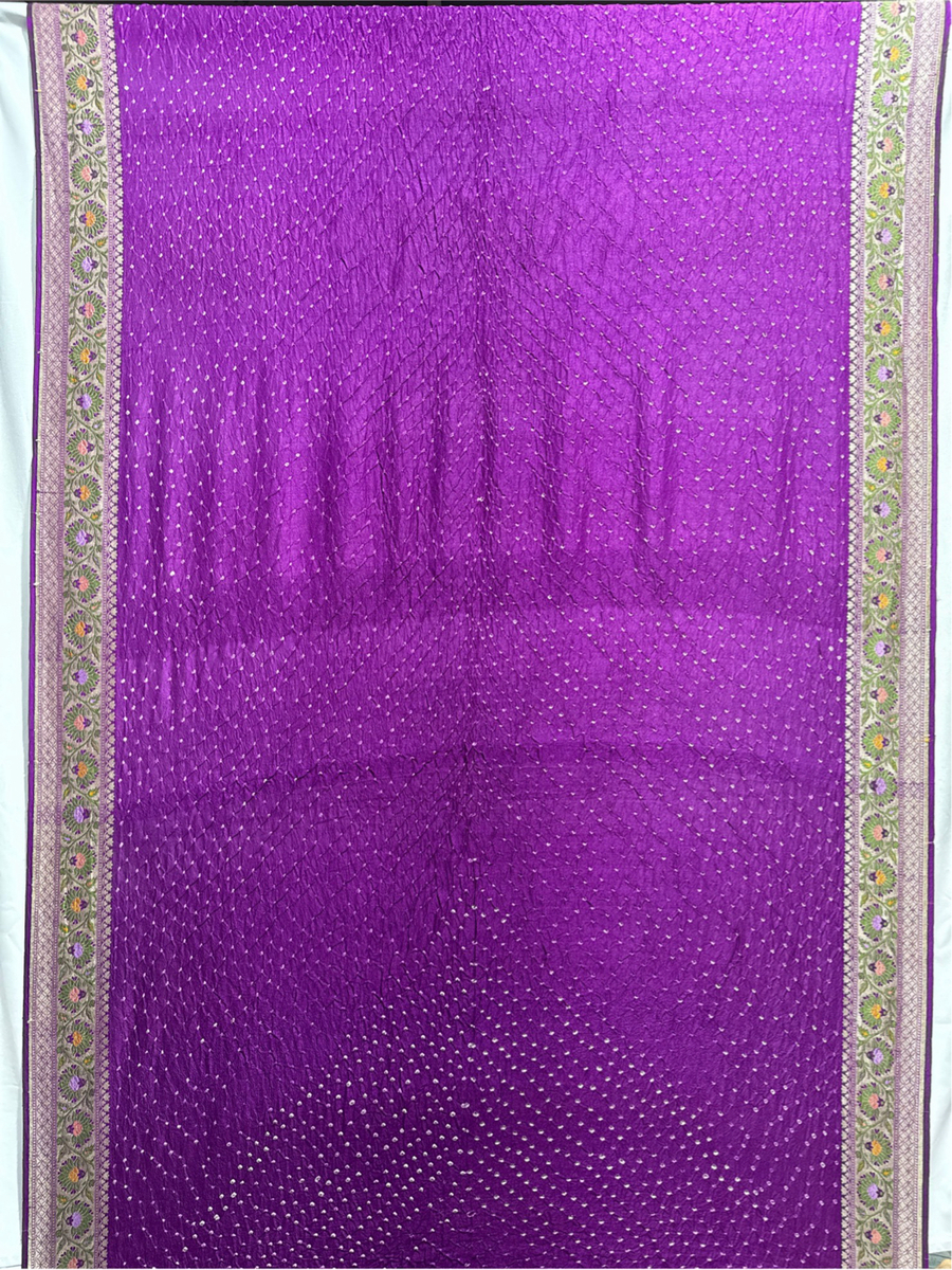 - Material: Made from premium Pure Silk with detailed handcrafted Bandhani work, offering a luxurious blend of tradition and elegance.
