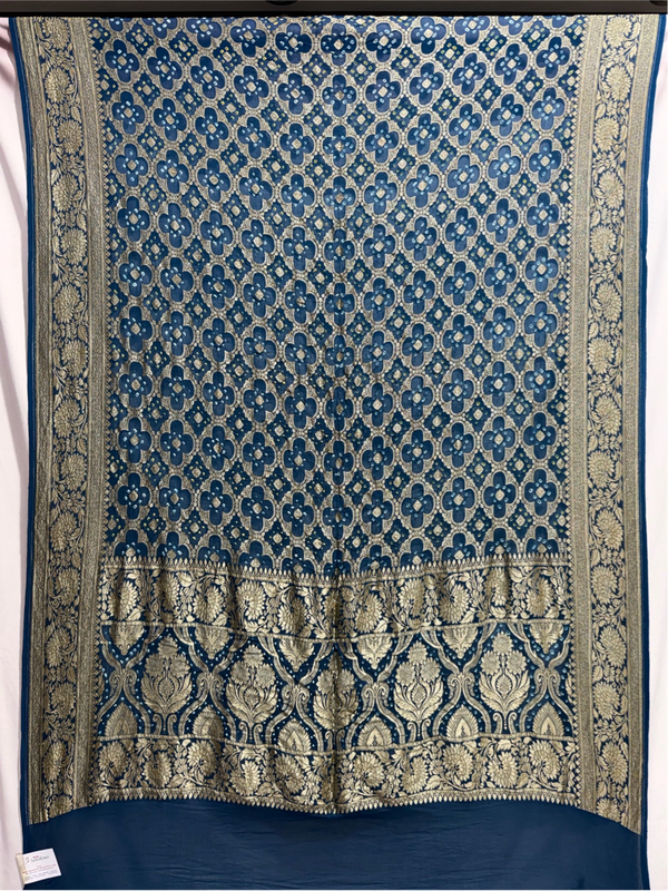 Kala Sanskruti Indigo Blue Color Banarasi Georgette Bandhani Dupatta 2.5 M Elegant Traditional Wear Unique Dupatta for Women