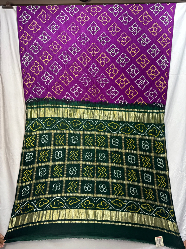 - Color & Work: A magenta & green saree adorned with intricate Hand Made Bandhani, designed to make it stand out on festive and wedding occasions.