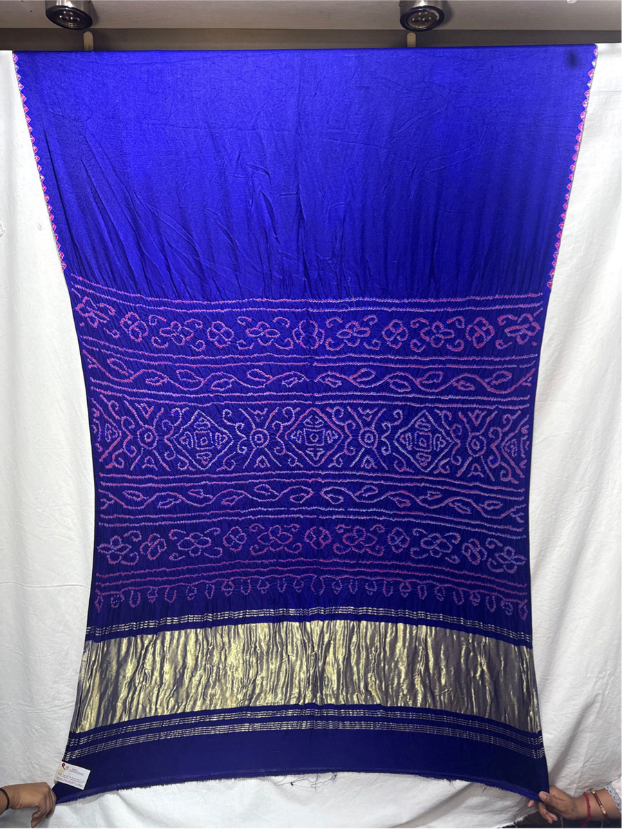 - Color & Work: A all over blue saree adorned with intricate Hand Made Bandhani, designed to make it stand out on festive and wedding occasions.