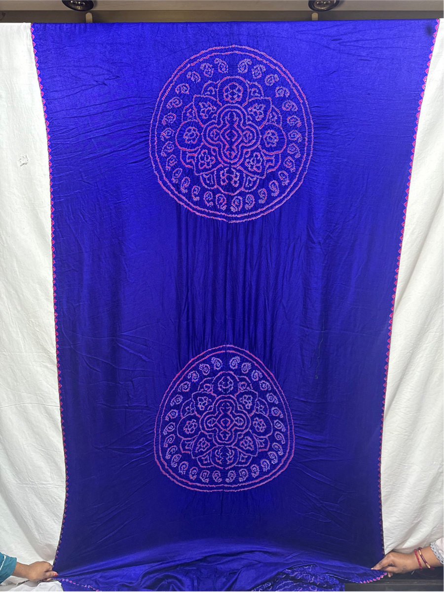 - Material: Made from premium Pure Gaji Silk with exquisite handcrafted Hand Made Bandhani, offering a luxurious blend of tradition and elegance.