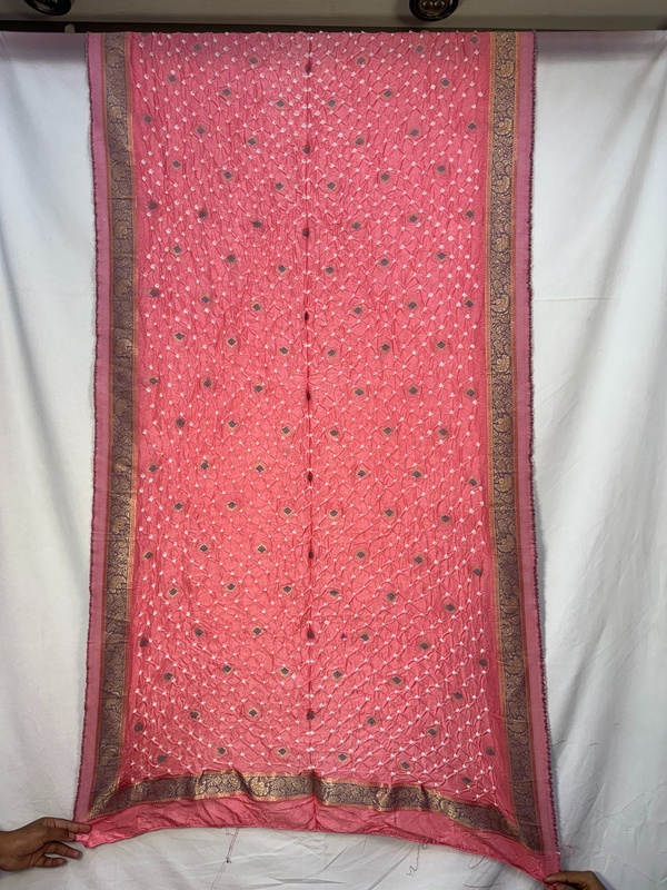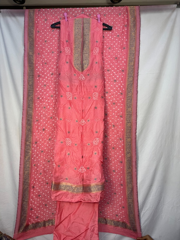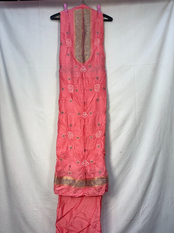 - Design: All Over Peach — Hand Made Bandhani motifs across the body.