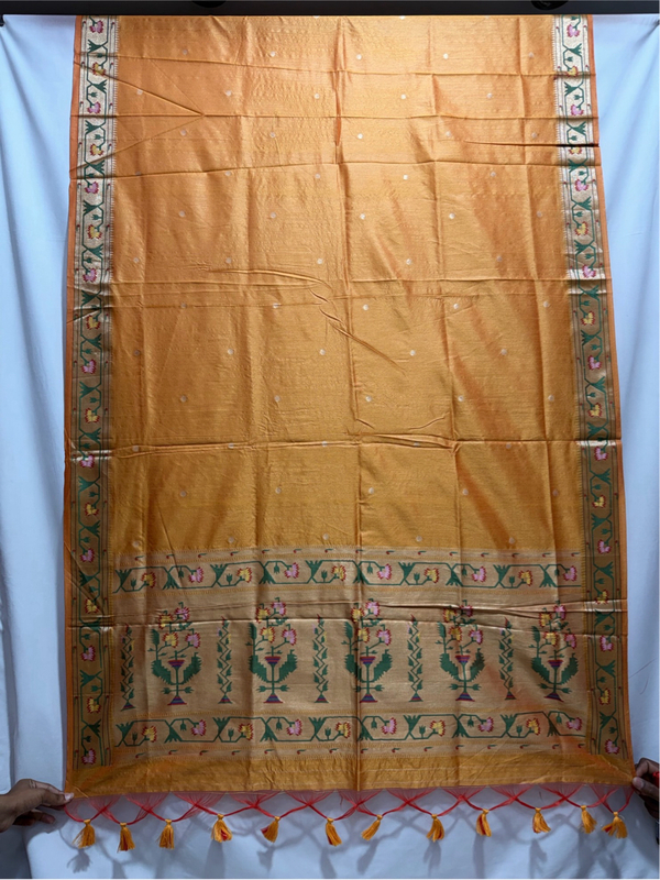 Kala Sanskruti All Over Orange Color Art Silk Patola Dress 2.5 M Each Piece Elegant Traditional Wear Art Silk Dress for Women