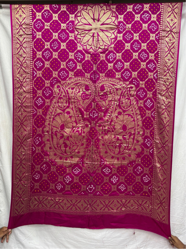 - Design: All Over PInk tone enhanced by Hand Made Bandhani.