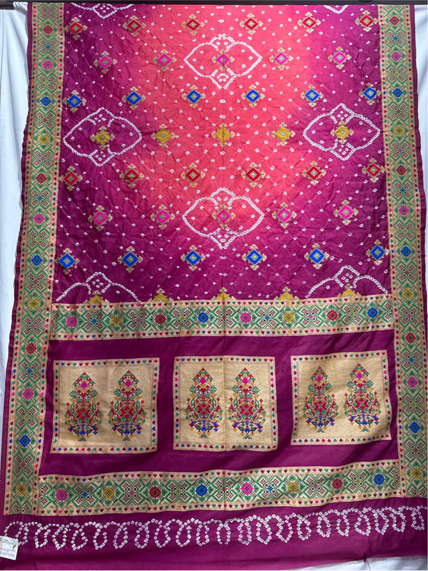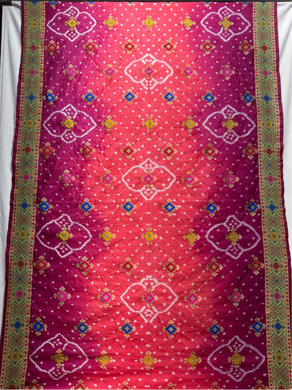 - Color & Craft: Beautiful Peach & Majenta Shaded designed with Hand Made Bandhani, reflecting artisanal skill.