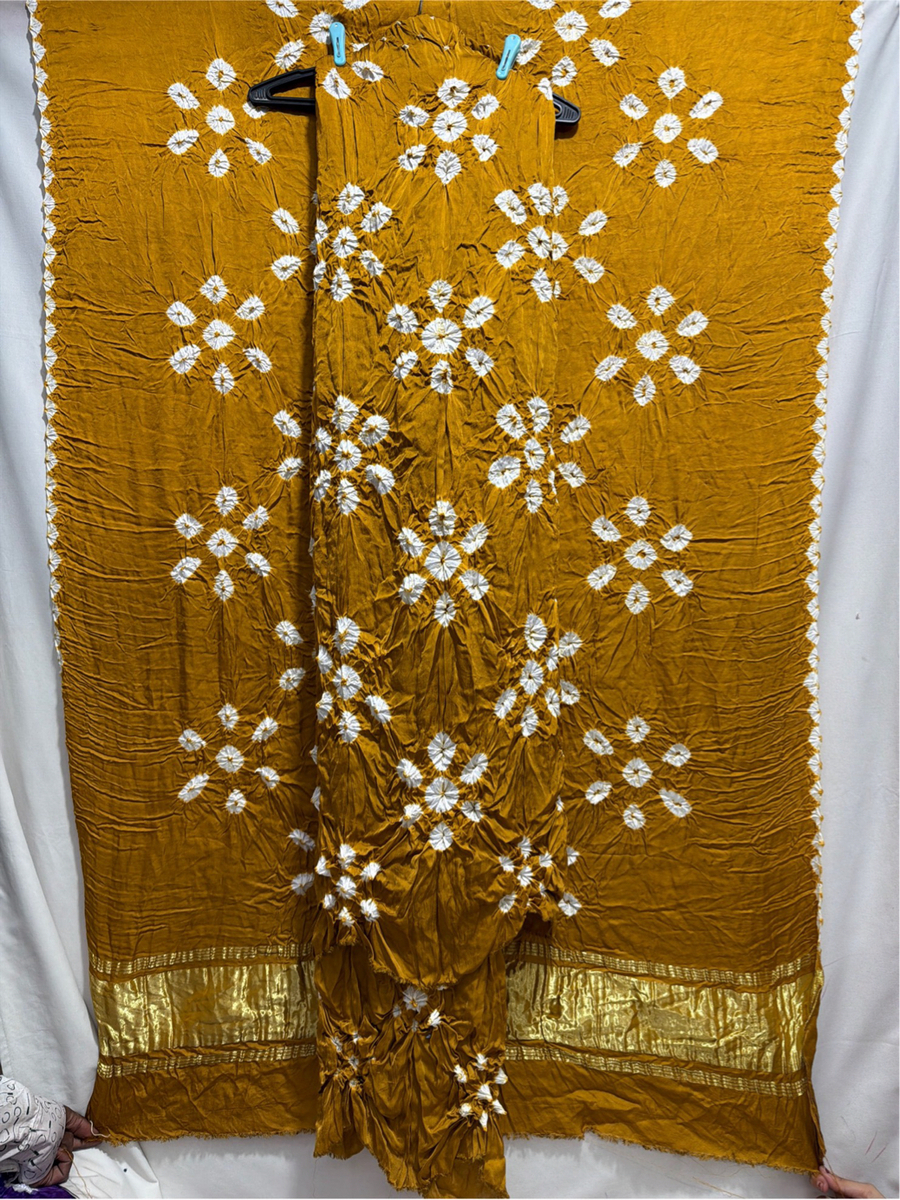 Kala Sanskruti Rust & White Color Art Silk Bandhani Dress 2.5 M Each Piece Elegant Traditional Wear Art Silk Dress for Women