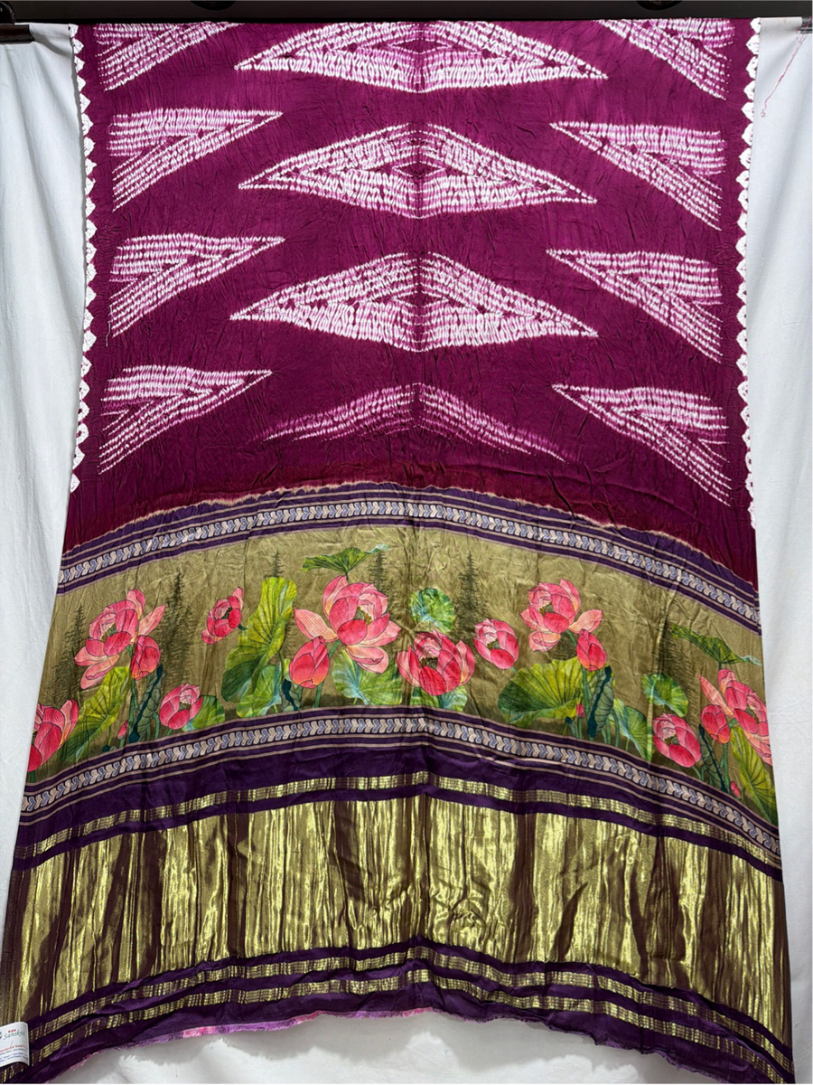 Kala Sanskruti Wine & Purple Color Art Silk Bandhani Saree 6.5M with Blouse Piece Elegant Traditional Wear Bridal Unique Saree for Women