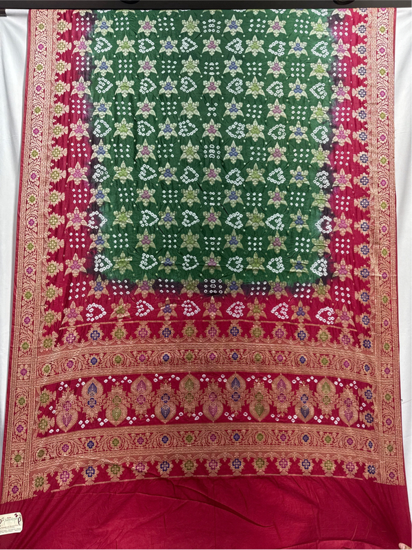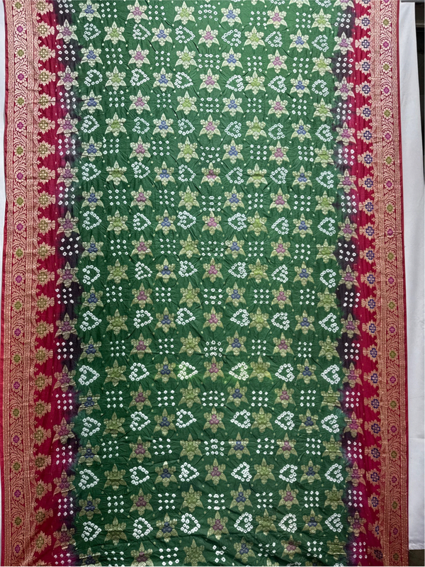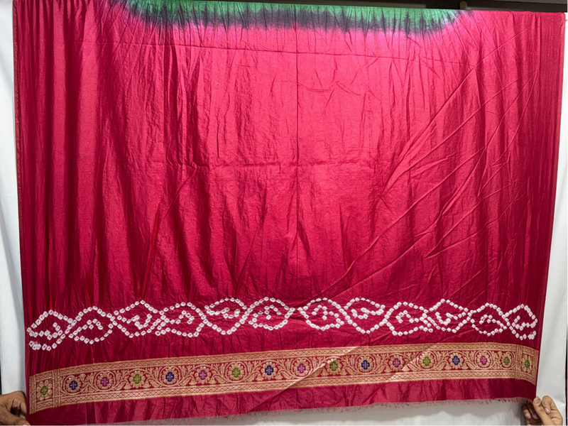 - Design & Shade: Green & Red Shaded base enhanced with Hand Made Bandhani, a true example of cultural craftsmanship.