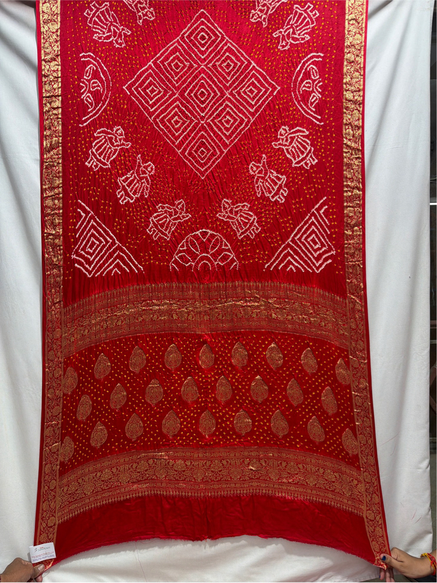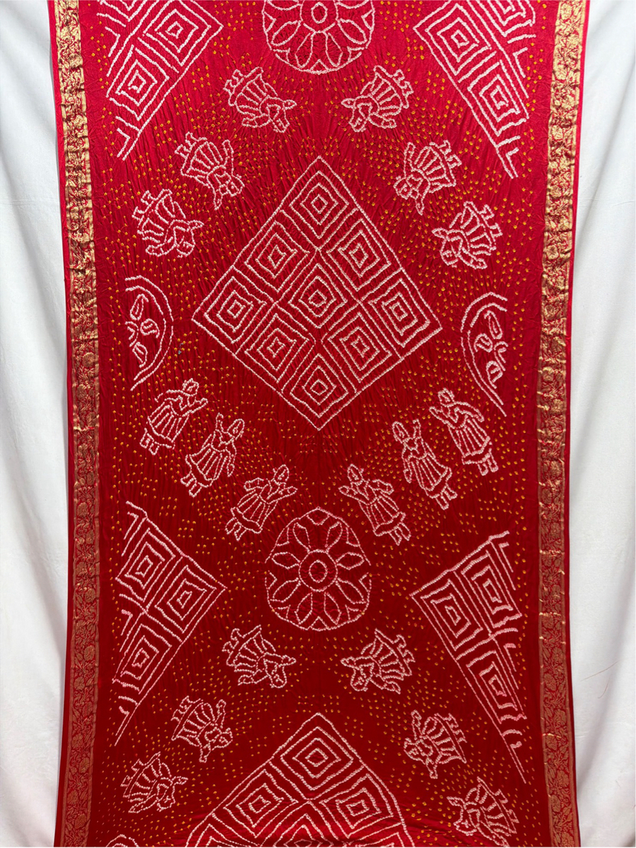 Kala Sanskruti All Over Cherry Red Color Pure Gaji Silk Bandhani Saree 6.5M with Blouse Piece Elegant Traditional Wear Saree for Women