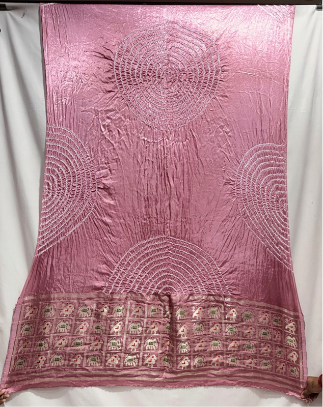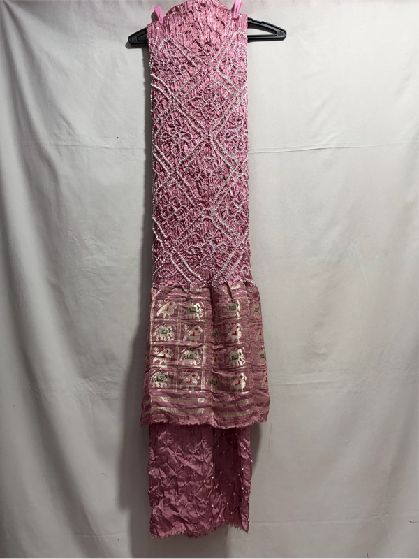 Kala Sanskruti All Over Gajri Color Art Silk Bandhani Dress 2.5 M Each Piece Elegant Traditional Wear Art Silk Dress for Women