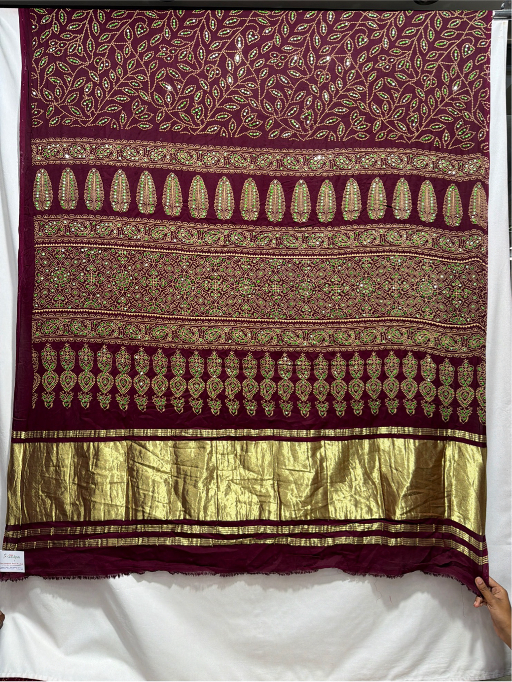 Kala Sanskruti All Over Coffee Color Semi Gaji Bandhani Saree With Hand Work 6.5M Elegant Traditional Wear Graceful Handcrafted Artistry For Woman
