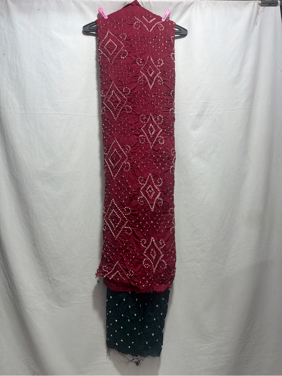 Kala Sanskruti Maroon & Green Color Heavy Cotton Satin Bandhani Dress 2.5 M (Each Piece) Elegant Traditional Wear Dress Material for Women