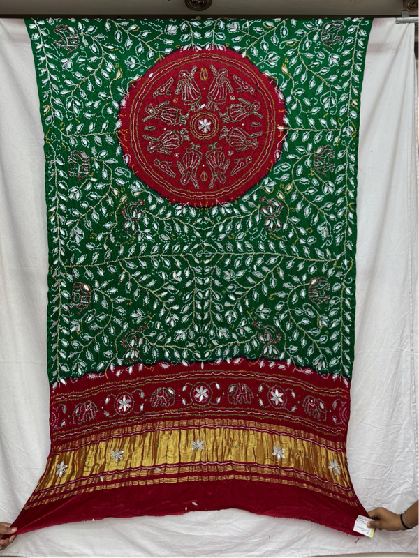 - Shade & Work: Green & Red highlighted with Hand Made Bandhani.