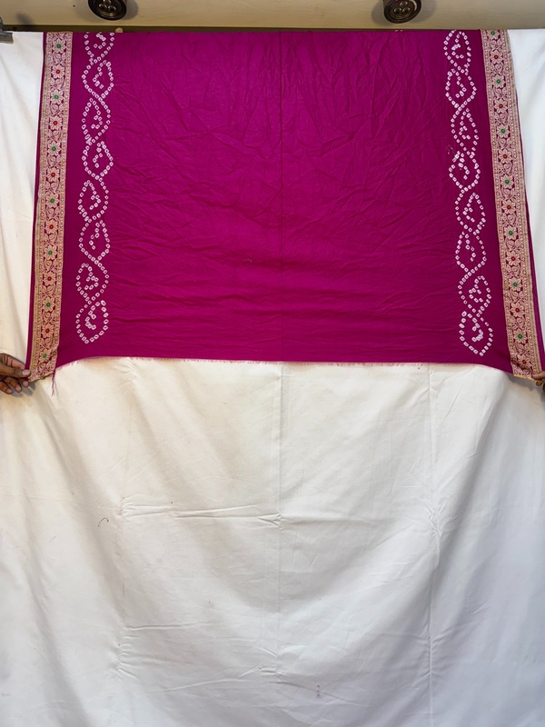 - Color Story: Striking All Ove Whine complemented with Hand Made Bandhani.