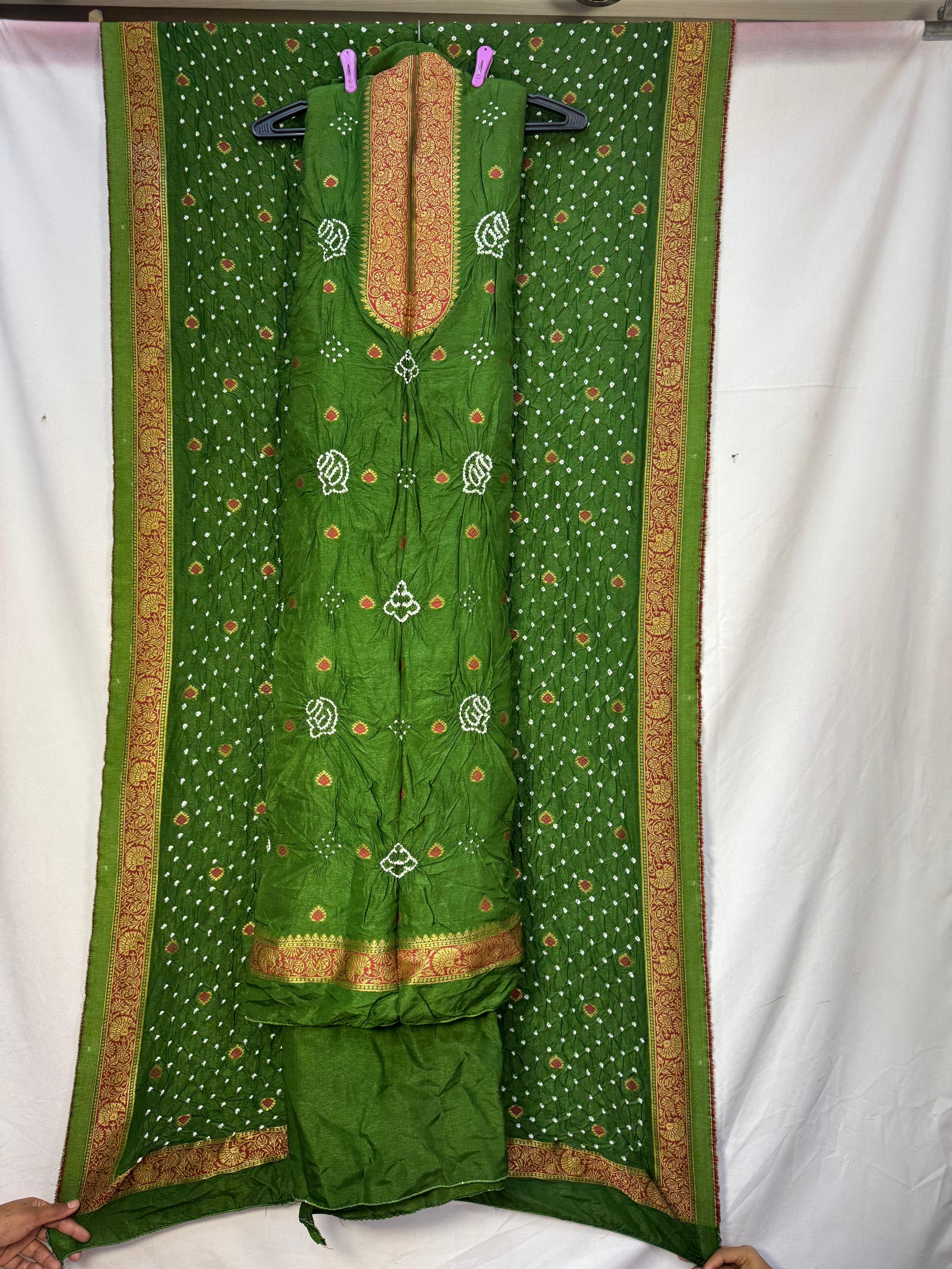 Kala Sanskruti All Over Mehndi Color Art Silk Bandhani Dress – 2.5M (Each Piece)– Elegant Traditional Wear Bridal Dress for Women