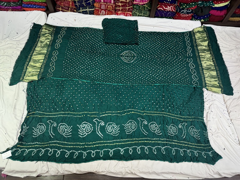 - Design: All Over Rama Green — Hand Made Bandhani motifs across the body.