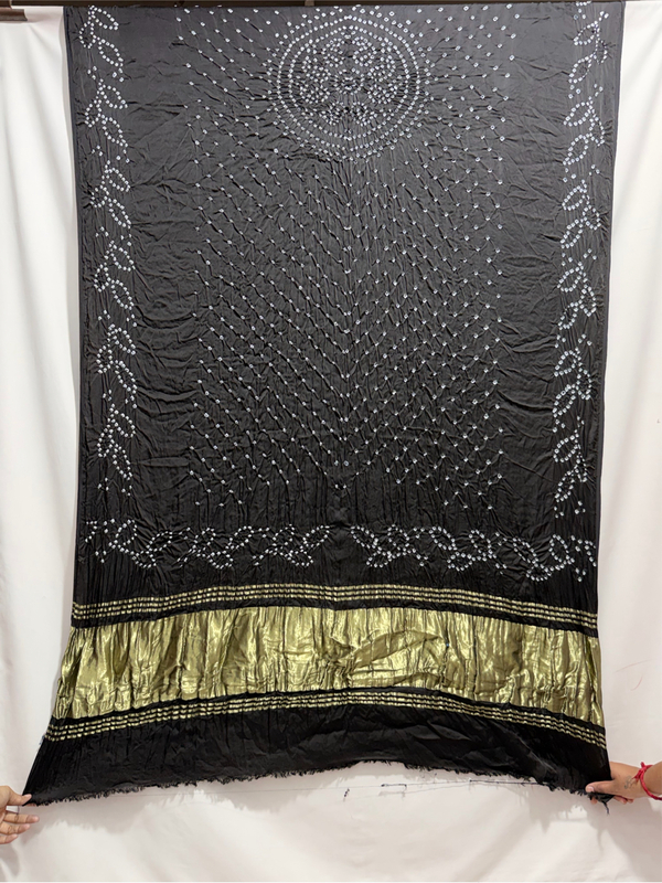 Kala Sanskruti All Over Black Color Art Silk Bandhani Dress 2.5 M Each Piece Elegant Traditional Wear Art Silk Dress for Women