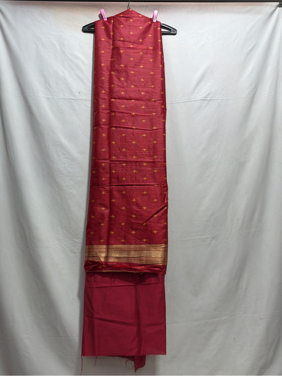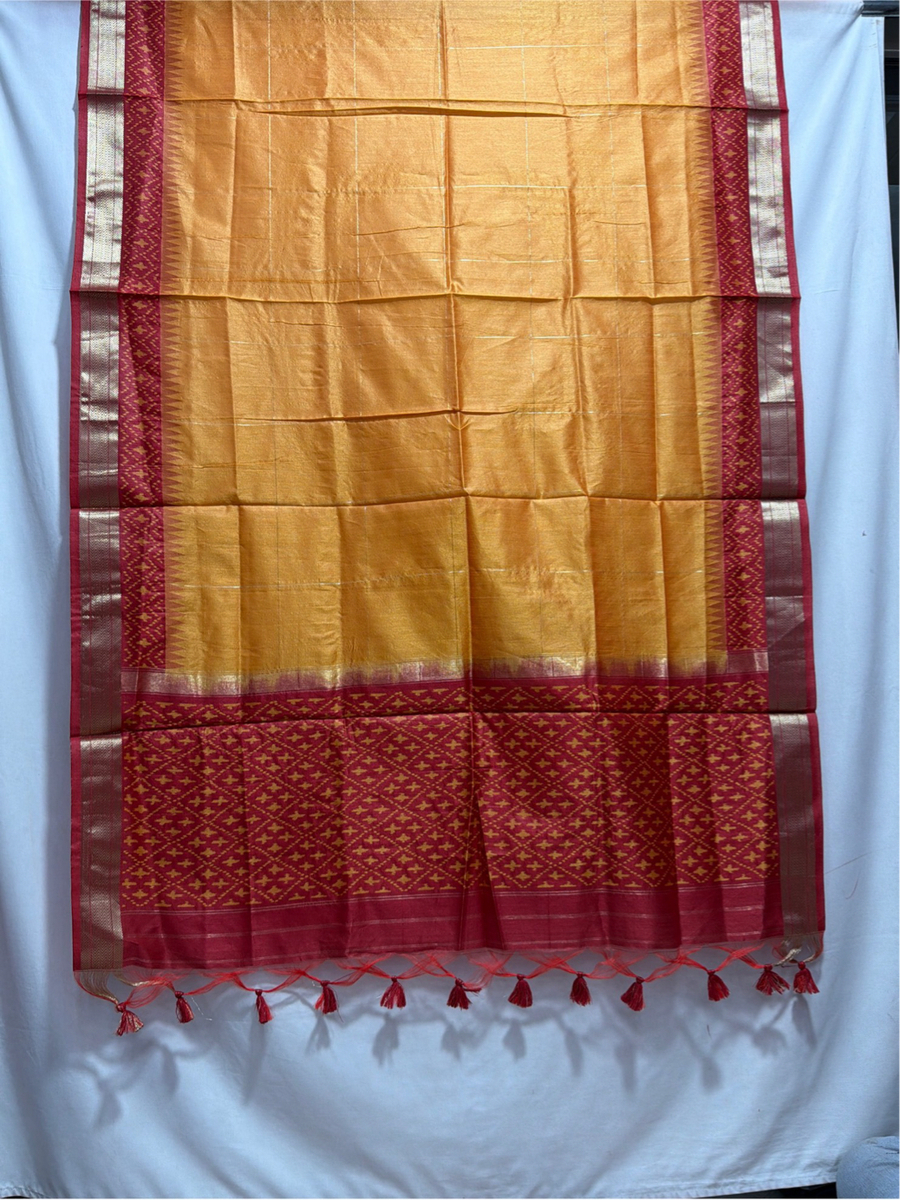 Kala Sanskruti Red & Golden Color Art Silk Patola Dress 2.5 M Each Piece Elegant Traditional Wear Art Silk Dress for Women