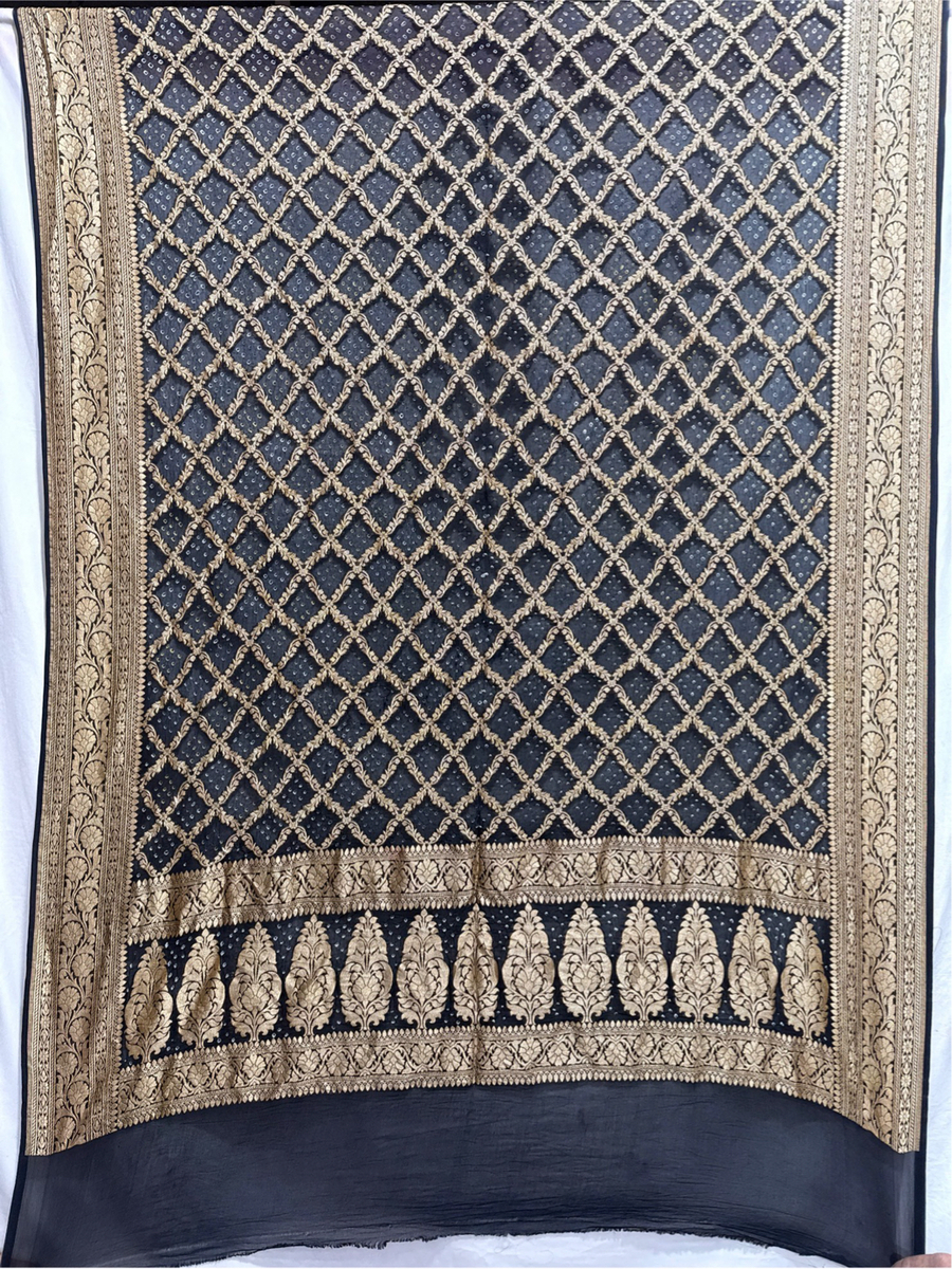 Kala Sanskruti All Over Black Color Banarasi Georgette Bandhani Dupatta 2.5 M Elegant Traditional Wear Unique Dupatta for Women