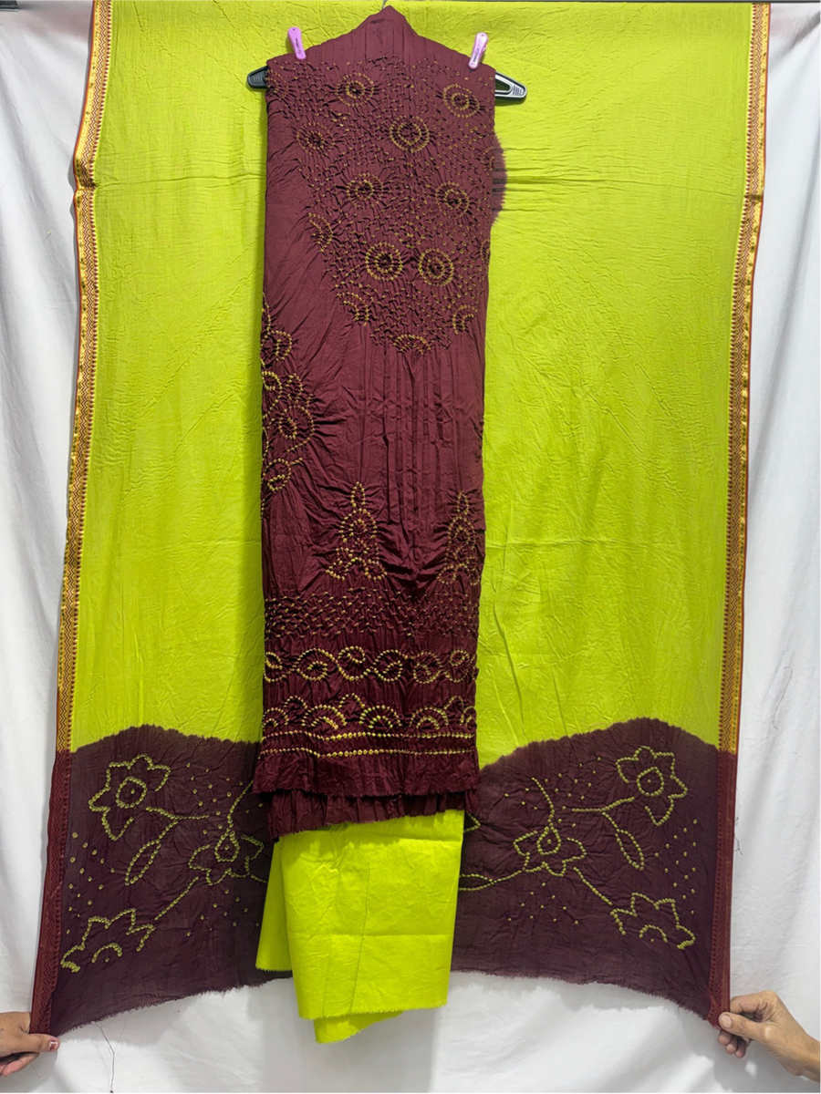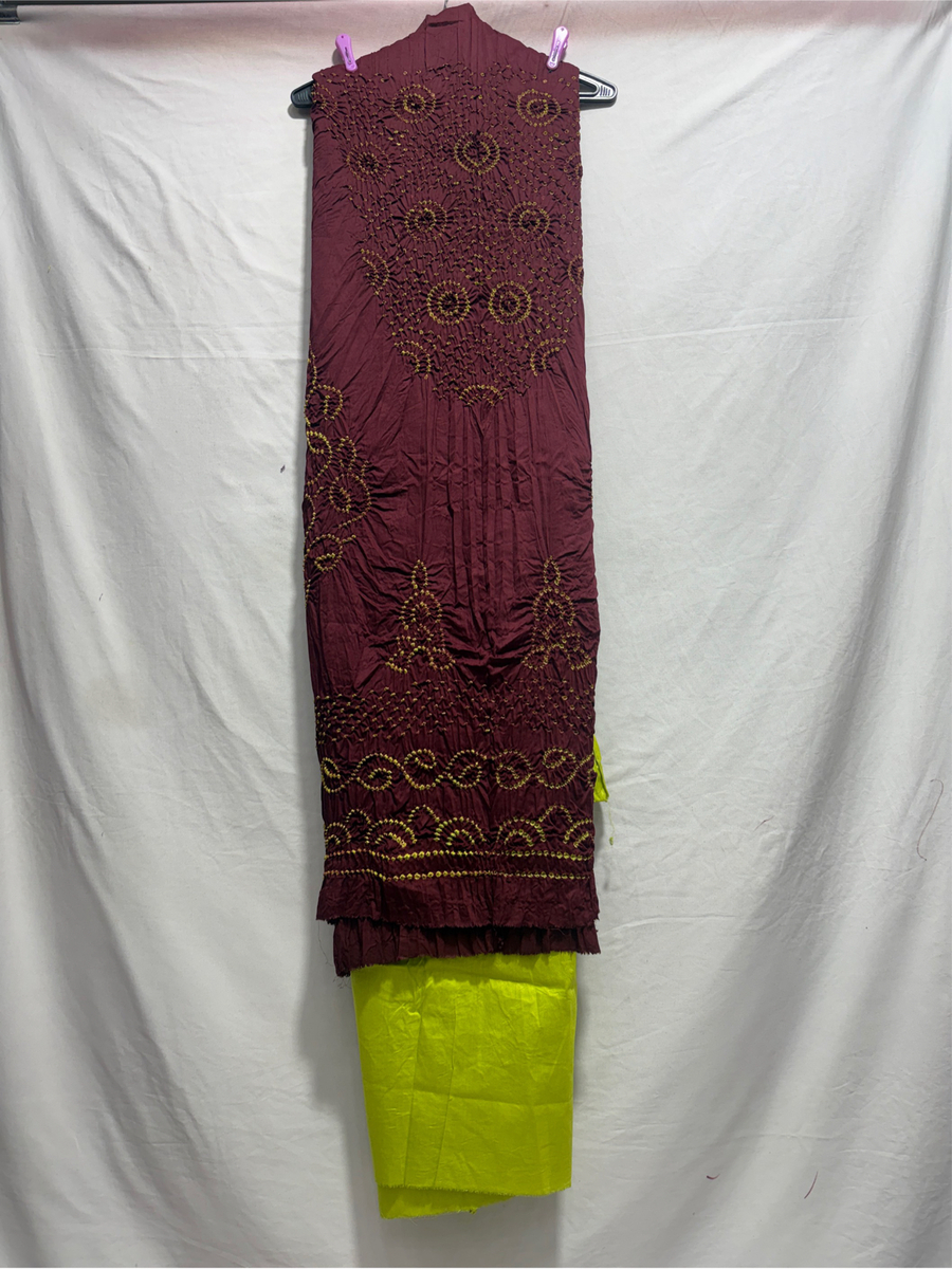 Kala Sanskruti Purple Chiku Colour Heavy Cotton Satin Bandhani Dress 2.5 M (Each Piece) Elegant Traditional Wear Dress Material for Women