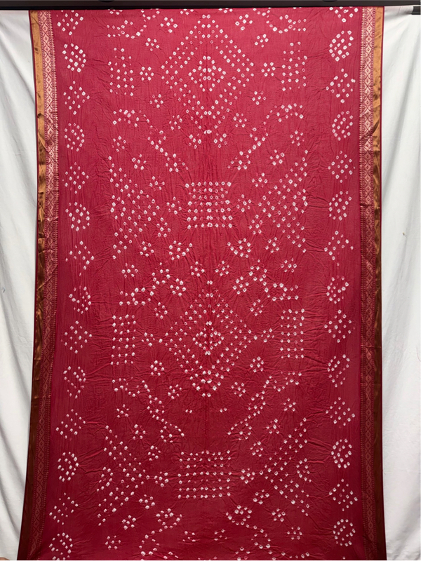 Material: Premium Cotton with authentic Bandhani craftsmanship. Color & Design: All Over Light Red traditional Bandhani pattern. Size & Length: 6.5m with blouse piece. Occasion: Suitable for festive, traditional, and daily ethnic wear. Features: - Soft feel - Elegant drape - Durable quality - Easy maintenance Made in India: Handcrafted by skilled artisans.