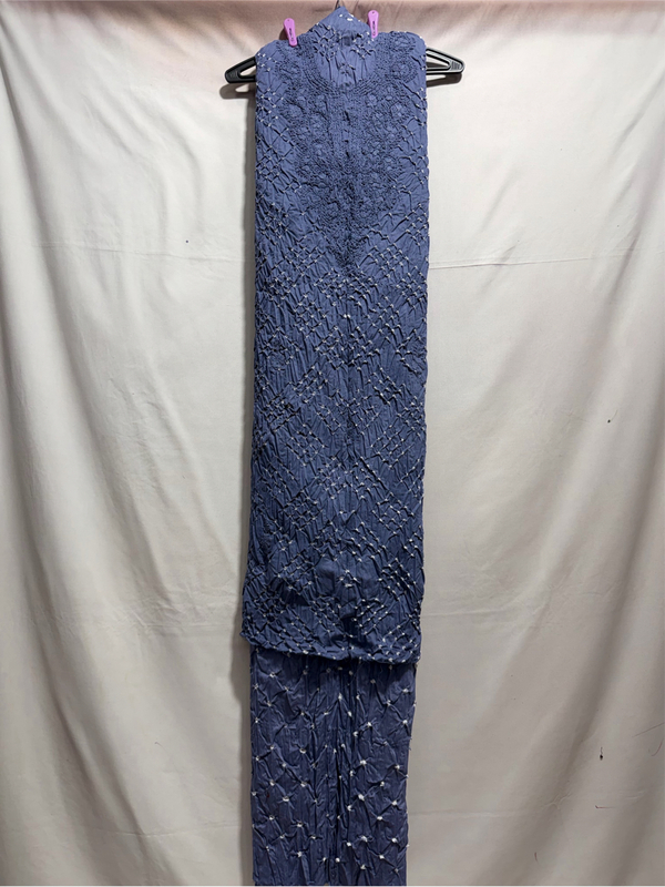 Kala Sanskruti Light Dark Blue Color Heavy Cotton Satin Bandhani Dress With Work 2.5 M (Each Piece) Elegant Traditional Wear Dress Material for Women