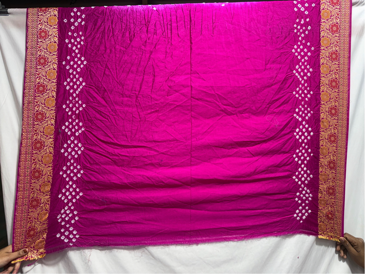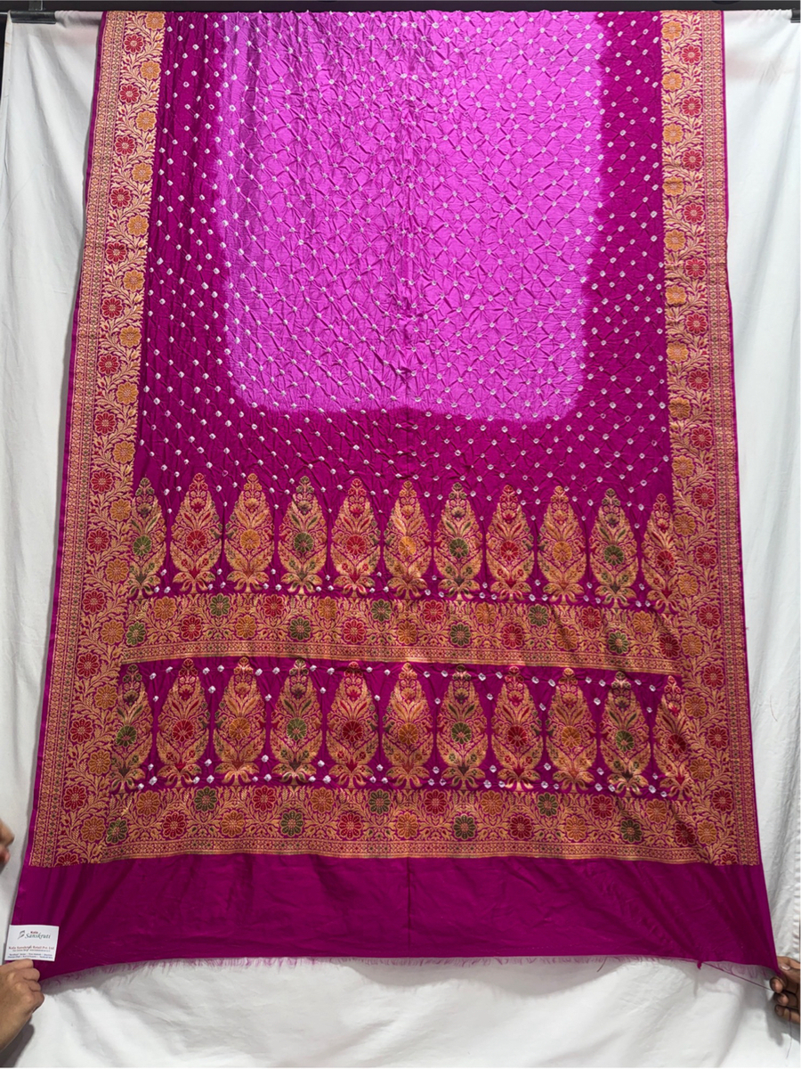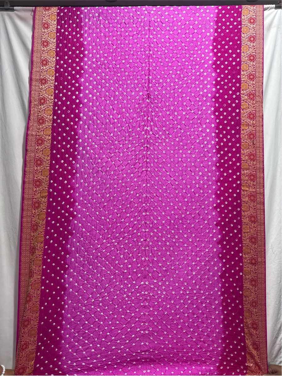 Kala Sanskruti Light Dark Pink Color Dupion Silk Bandhani Saree 6.5M with Blouse Piece Elegant Traditional Wear Bridal Saree for Women