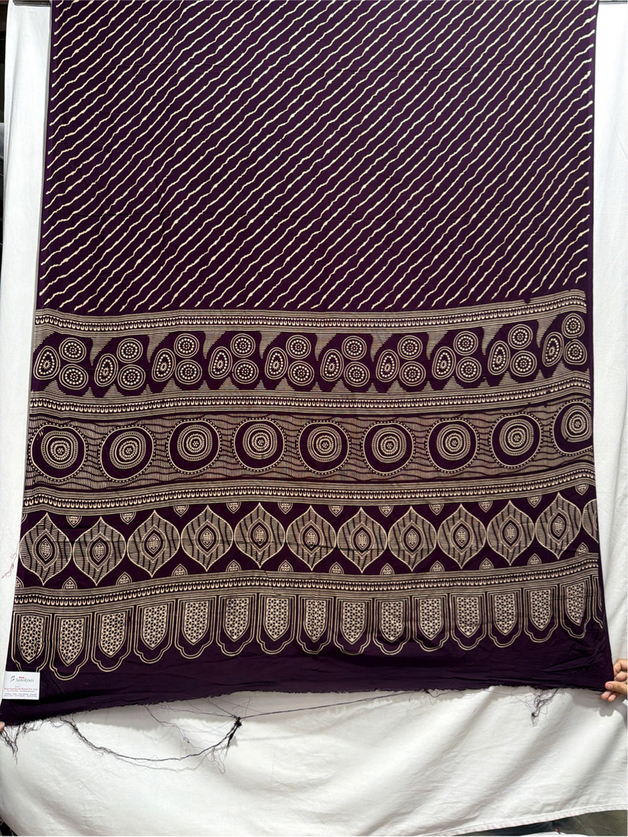 Kala Sanskruti All Over Dark Wine Color Art Silk Ajarakh Print Saree 6.5M with Blouse Piece Elegant Traditional Wear Bridal Unique Printed Saree for Women