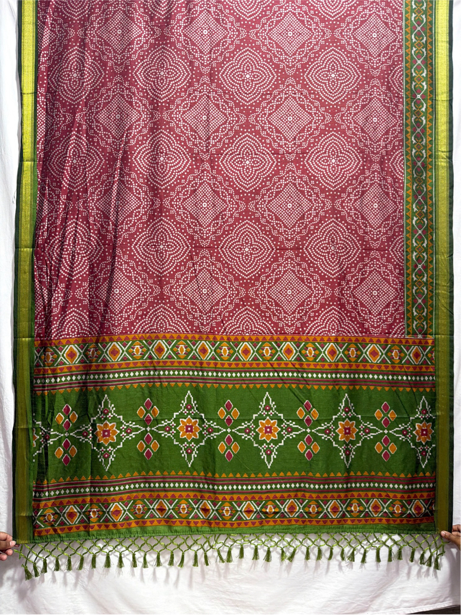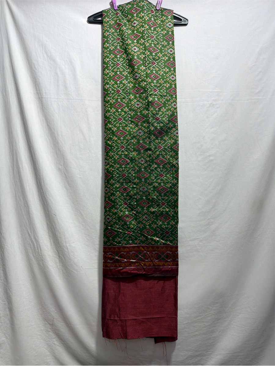 Kala Sanskruti Mahendi & Maroon Color Art Silk Patola Dress 2.5 M Each Piece Elegant Traditional Wear Art Silk Dress for Women