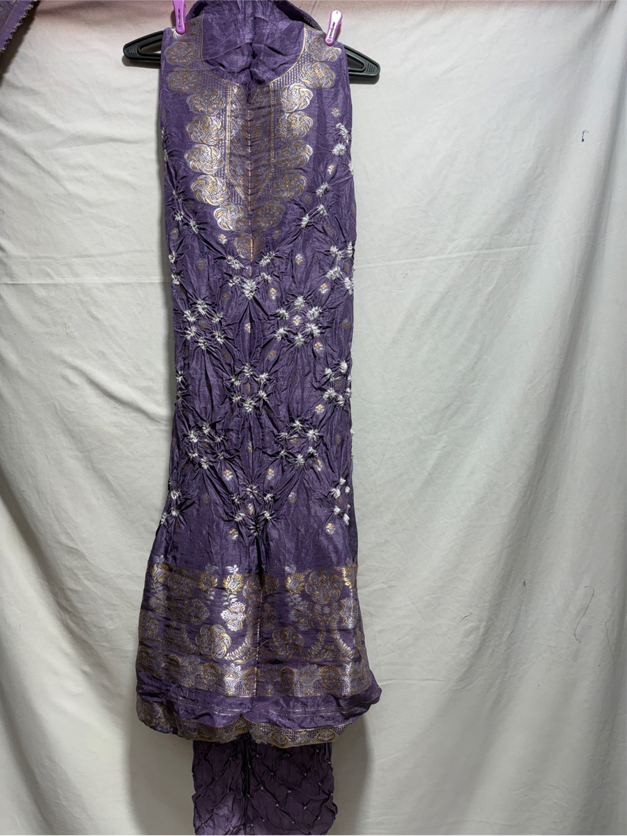 Kala Sanskruti Light Dark Purple Color Art Silk Bandhani Dress 2.5 M Each Piece Elegant Traditional Wear Art Silk Dress for Women