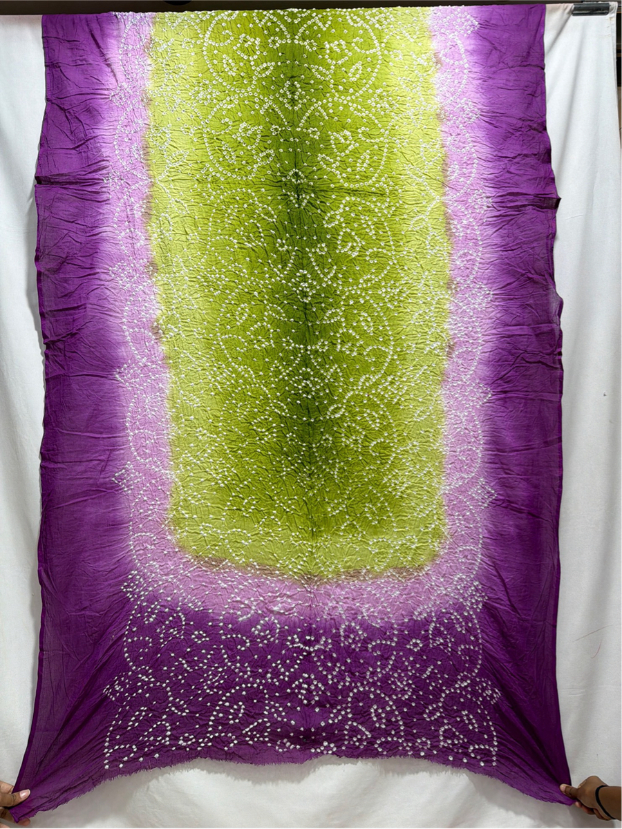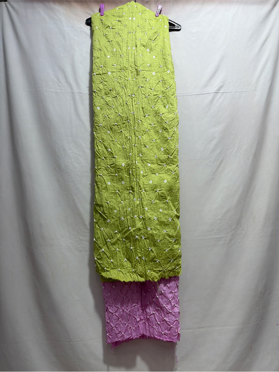 Kala Sanskruti Pista & Lavendar Color Heavy Cotton Satin Bandhani Dress 2.5 M (Each Piece) Elegant Traditional Wear Dress Material for Women