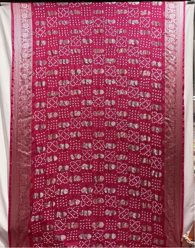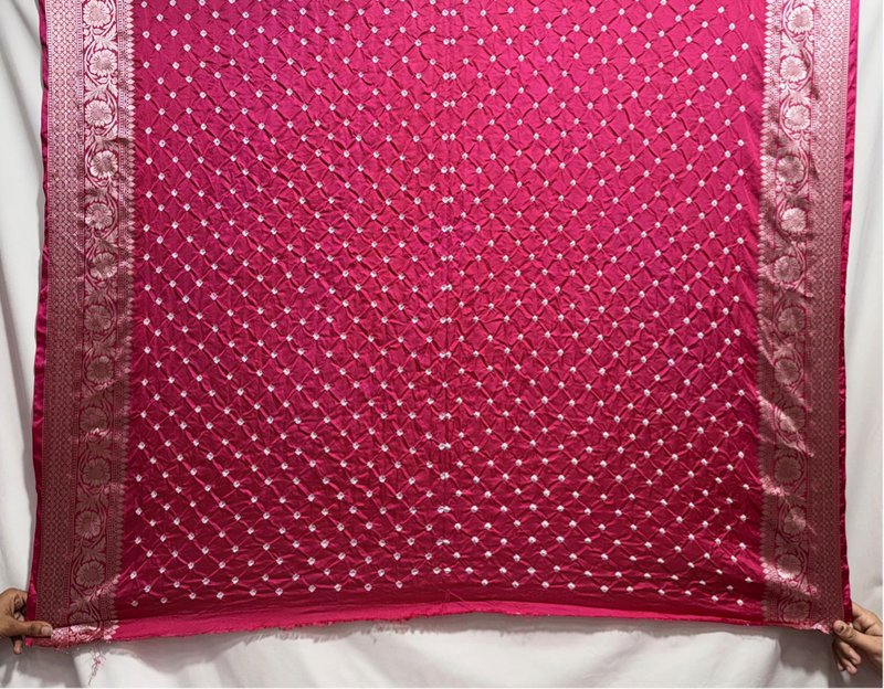 Kala Sanskruti All Over Rani Pink Color Dupion Silk Bandhani Saree 6.5M with Blouse Piece Elegant Traditional Wear Bridal Saree for Women