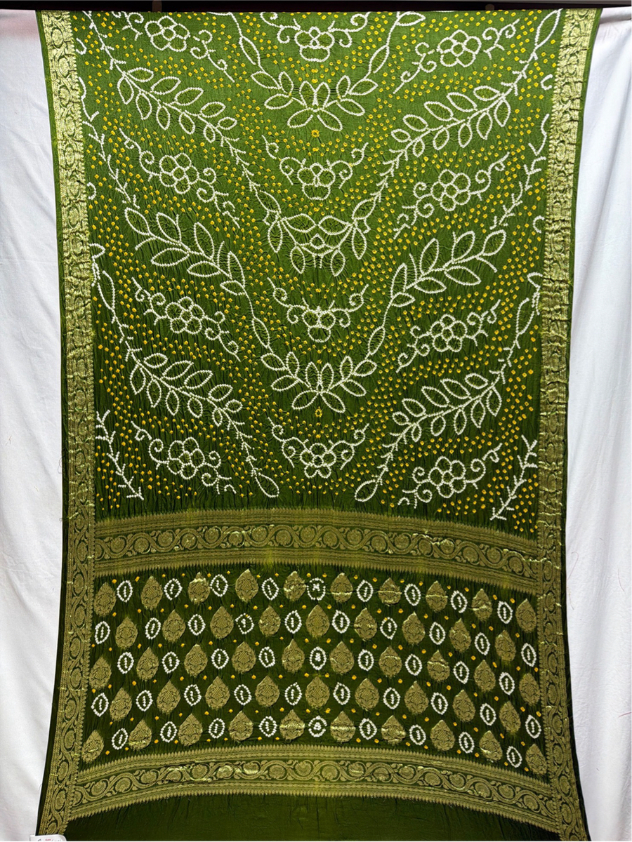 Kala Sanskruti All Over Dark Mehandi Color Pure Gaji Silk Bandhani Saree 6.5M with Blouse Piece Elegant Traditional Wear Saree for Women