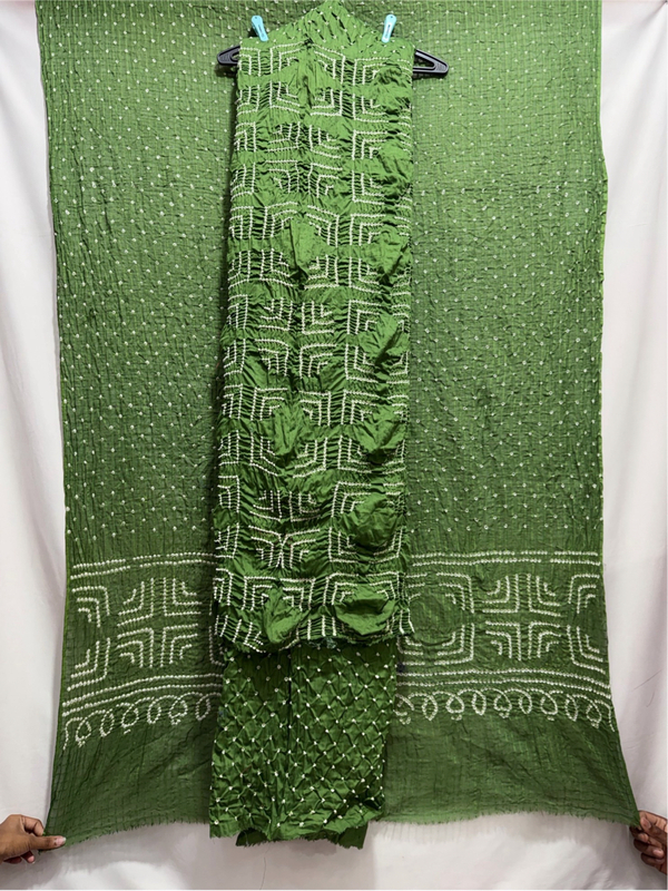 Kala Sanskruti All Over Green Color Heavy Cotton Satin Bandhani Dress 2.5 M (Each Piece) Elegant Traditional Wear Dress Material for Women