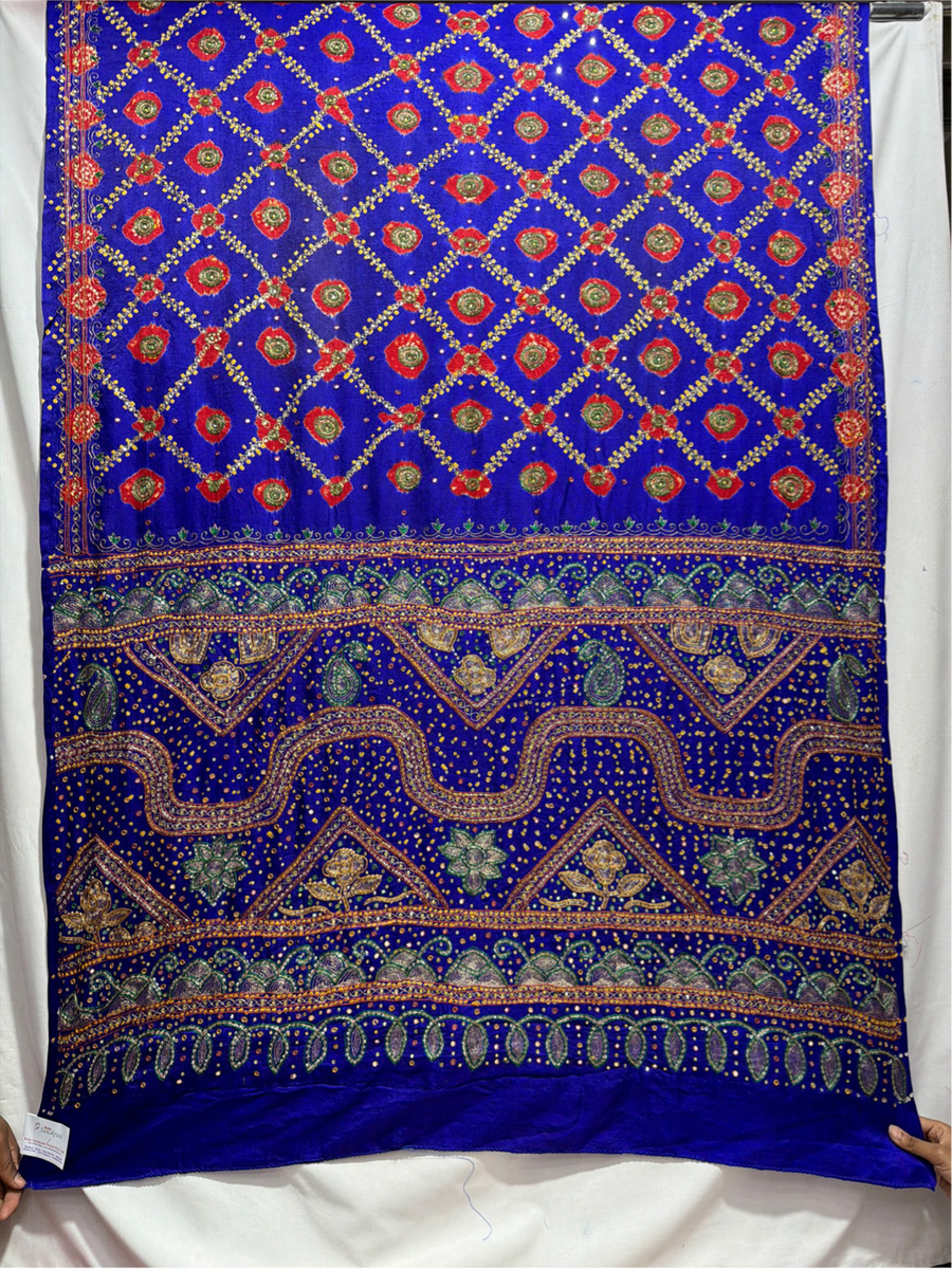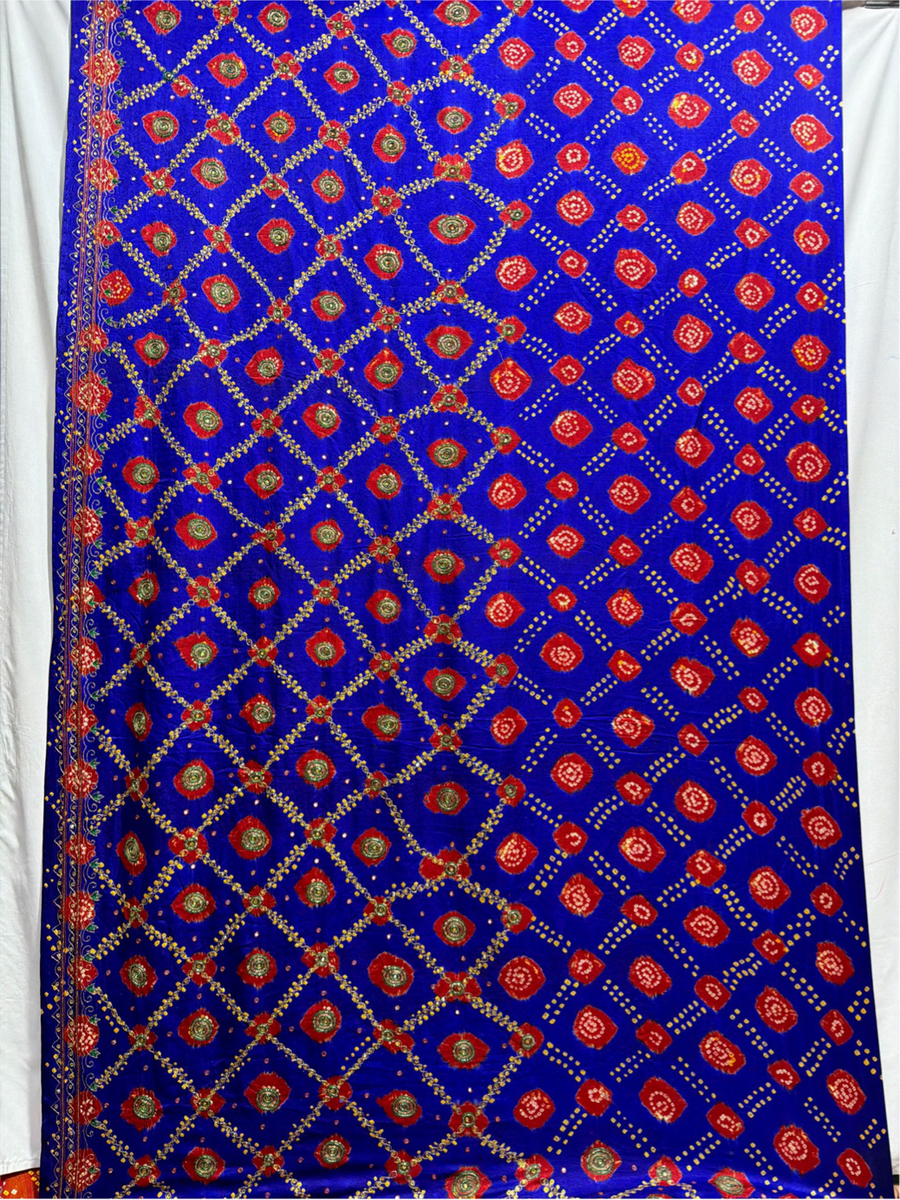 Kala Sanskruti All Over Blue Color Pure Gaji Silk Bandhani Saree With Hand Work 5.5M Without Blouse Elegant Traditional Wear Graceful Handcrafted Artistry For Woman