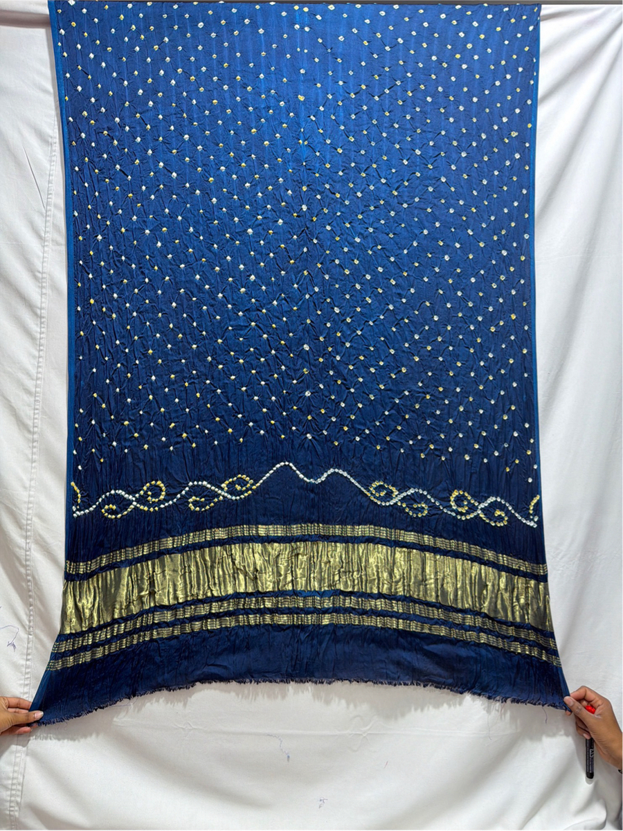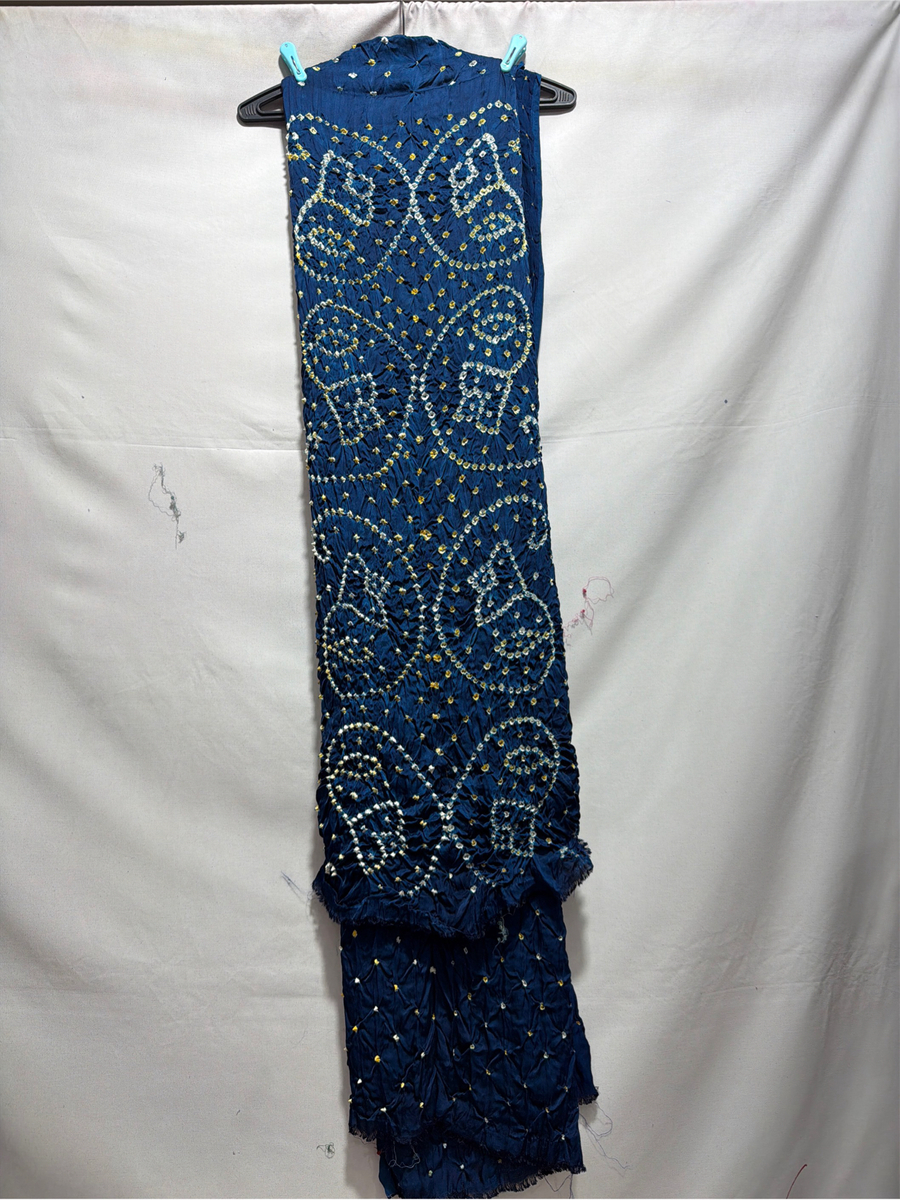 Kala Sanskruti All Over Indigo Blue Color Art Silk Bandhani Dress 2.5 M Each Piece Elegant Traditional Wear Art Silk Dress for Women