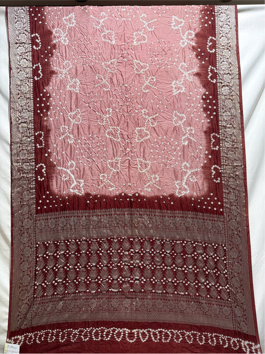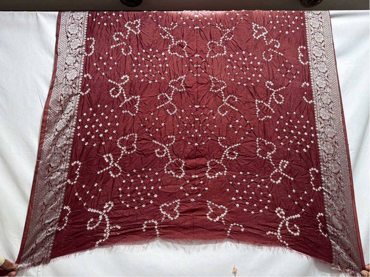 Kala Sanskruti Chiku & Chocolate Color Dupion Silk Bandhani Saree 6.5M with Blouse Piece Elegant Traditional Wear Bridal Saree for Women