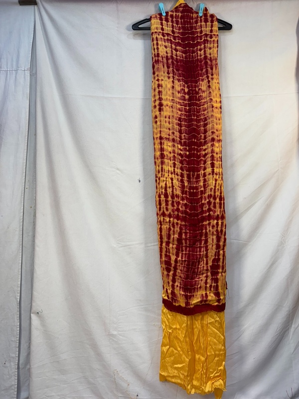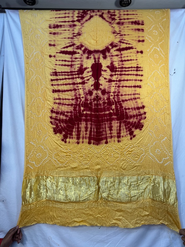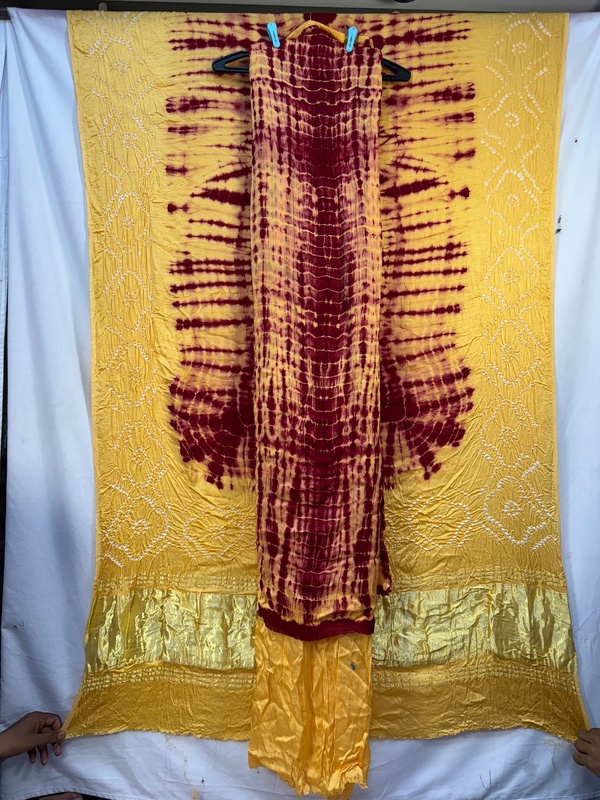 - Design: Red & Golden — Hand Made Bandhani motifs across the body.