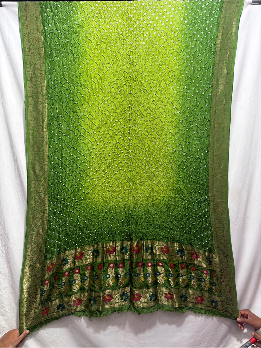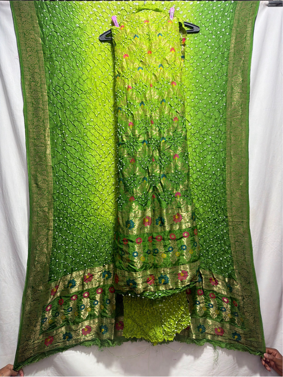Kala Sanskruti Light Dark Parrot Green Color Art Silk Bandhani Dress 2.5 M Each Piece Elegant Traditional Wear Art Silk Dress for Women