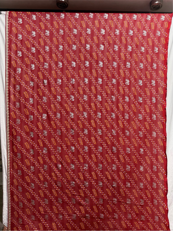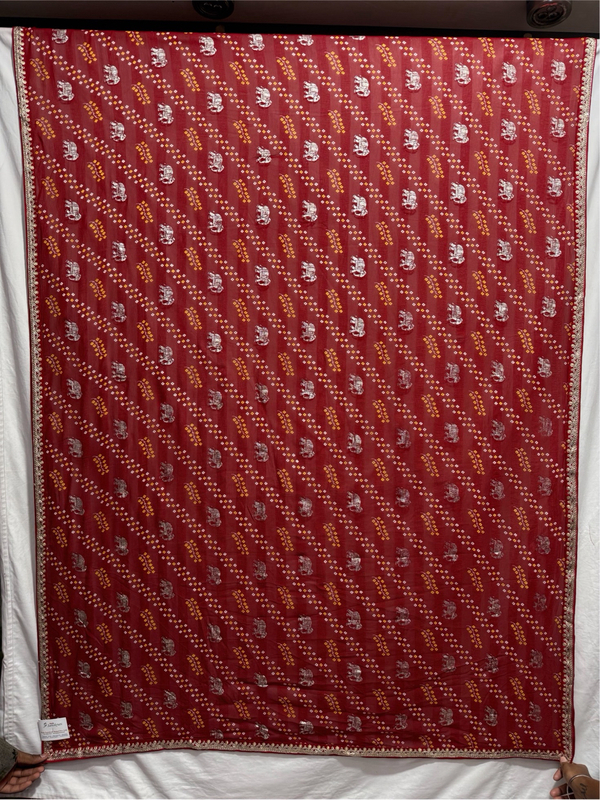 • Design: Maroon & Yellow Hand Made Bandhani motifs across the body.