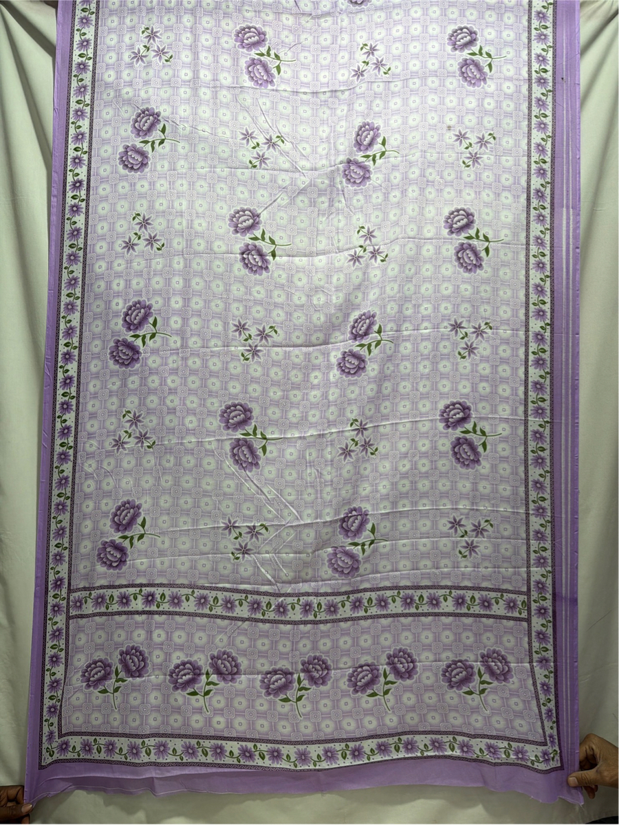 Kala Sanskruti Lavender & Whit Color Heavy Cotton Satin Printed Dress 2.5 M (Each Piece) Elegant Traditional Wear Dress Material for Women