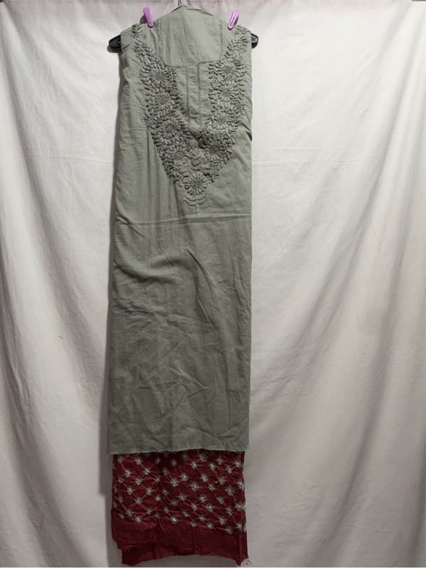 Kala Sanskruti Grey & Gajri Color Heavy Cotton Satin Bandhani Dress 2.5 M (Each Piece) Elegant Traditional Wear Dress Material for Women