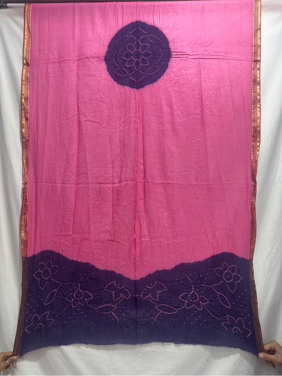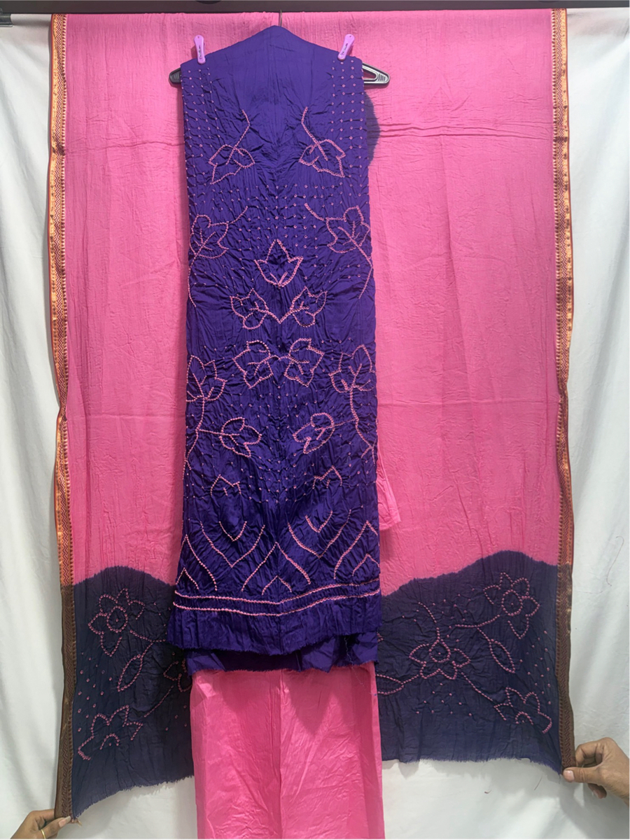 Kala Sanskruti Purple Pink Colour Heavy Cotton Satin Bandhani Dress 2.5 M (Each Piece) Elegant Traditional Wear Dress Material for Women