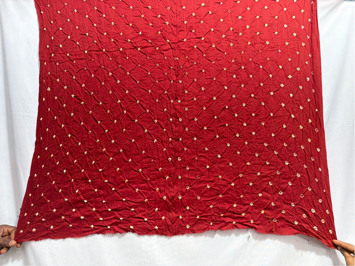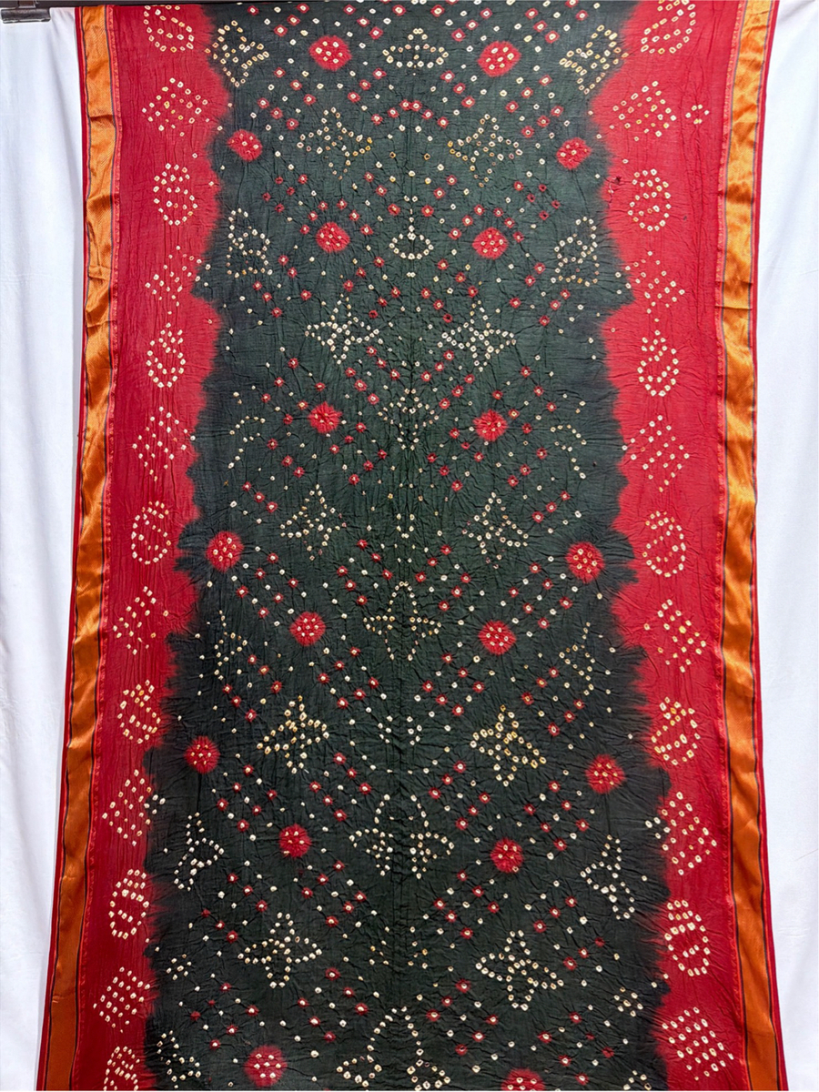 Kala Sanskruti Dark Mehnadi & Red Color Cotton Bandhani Saree 6.5M with Blouse Piece Elegant Traditional Wear Saree for Women