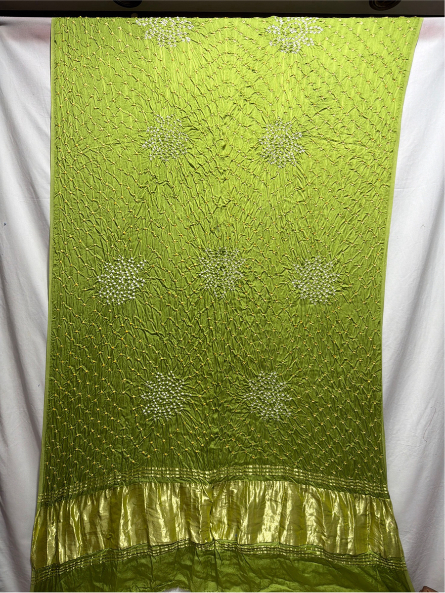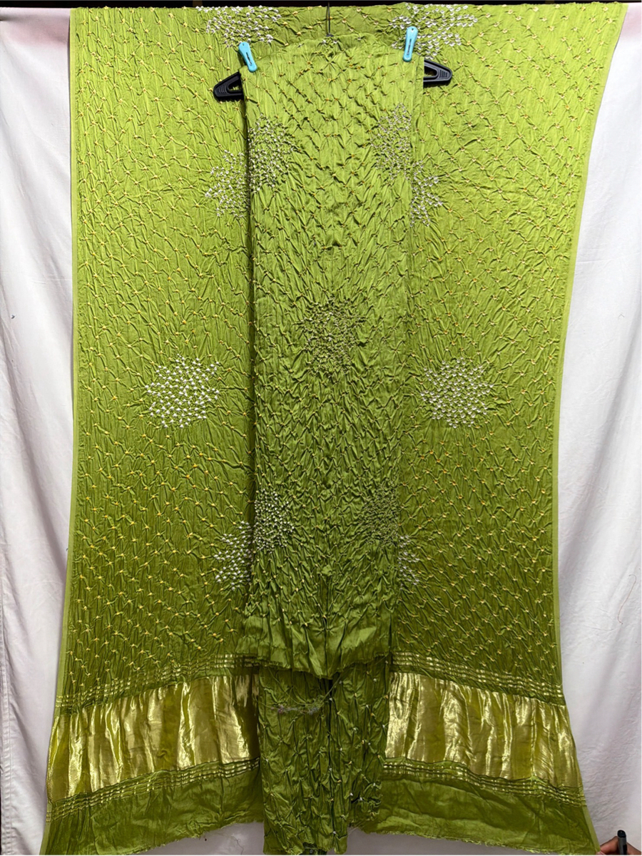 Kala Sanskruti All Over Pista Color Art Silk Bandhani Dress 2.5 M Each Piece Elegant Traditional Wear Art Silk Dress for Women