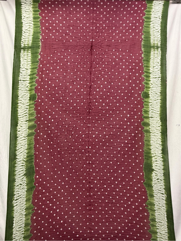 Kala Sanskruti Mehndi & Maroon Color Cotton Bandhani Saree 6.5M with Blouse Piece Elegant Traditional Wear Saree for Women