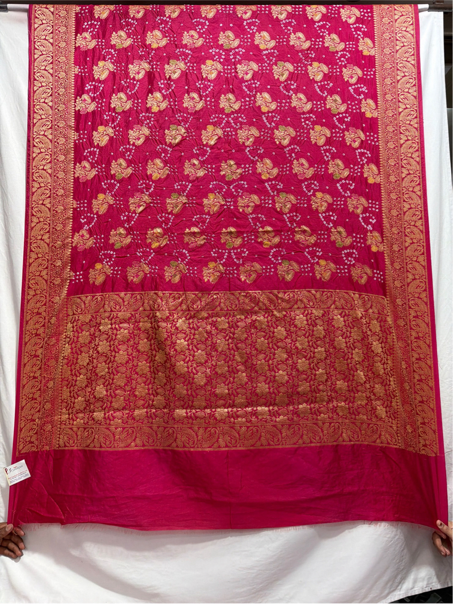 - Color Story: Striking All Over Tomato complemented with Hand Made Bandhani.