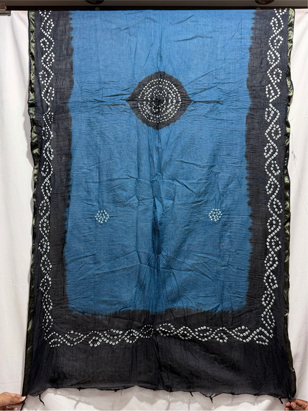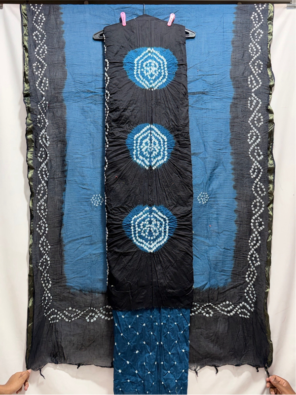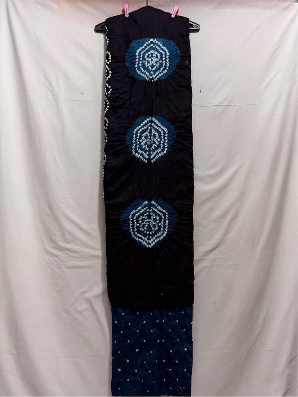 Kala Sanskruti Indigo & Black Color Heavy Cotton Satin Bandhani Dress 2.5 M (Each Piece) Elegant Traditional Wear Dress Material for Women