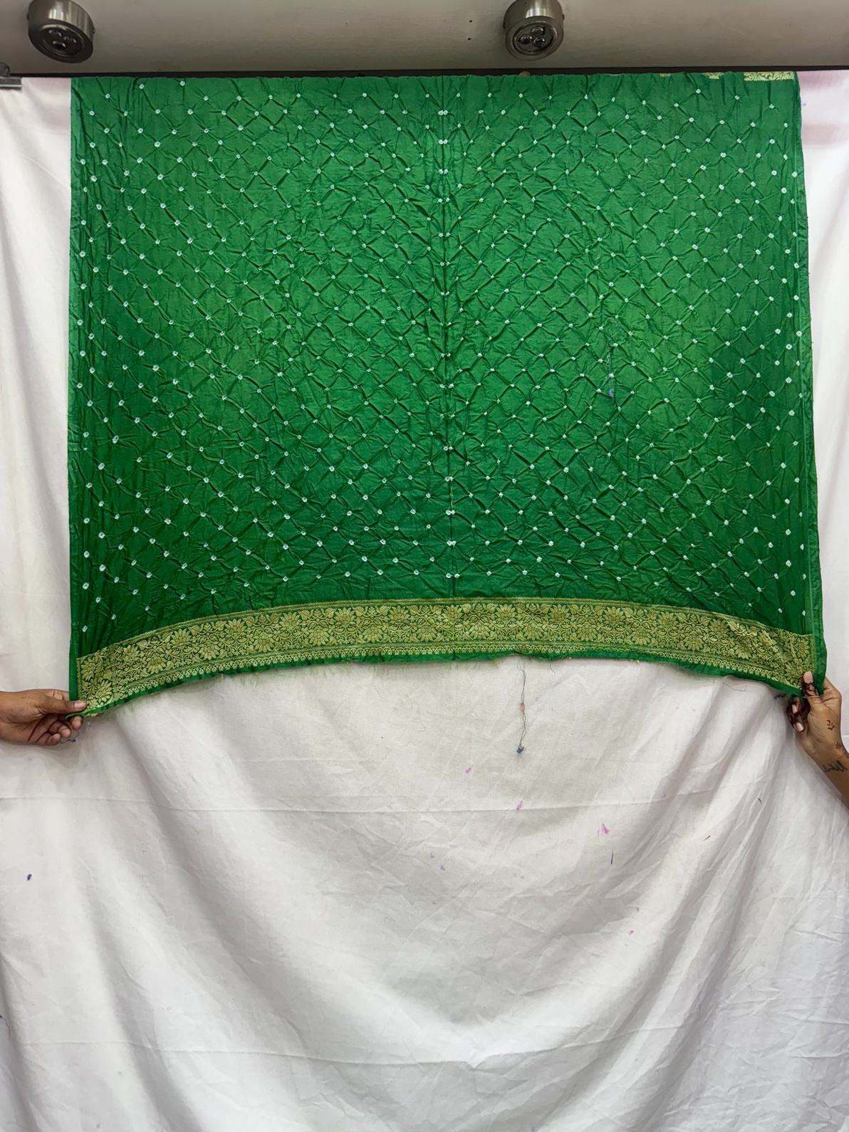 - Color Story: Striking Popati & Green complemented with Hand Made Bandhani.